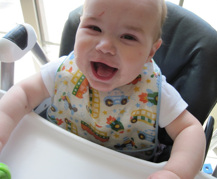 He sure is a smiley little dude, and loves to laugh at just about anything, especially Elijah being silly. He has had the most difficulty/pain with teething of any of our kids, but still has plenty of grins for us! He started teething late, but they came very quickly - the first four came one right after the other.